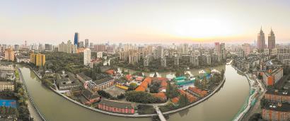 本報訊(記者 徐瑞哲)萬航渡路1575號,被蘇州河以U形緊緊擁抱的華東政法大學長寧校園,好似一座楔形半島。通過慢行動線,串聯水岸邊中西合璧、修舊如舊的一棟棟老樓,百年校園融入了濱河空間,建成開放共享的“一帶十景”。蘇州河華政段總長約910米,最窄處約4.5米、最寬處約98米,面積約2.1萬平方米,較原有空間增加1.86萬平方米。