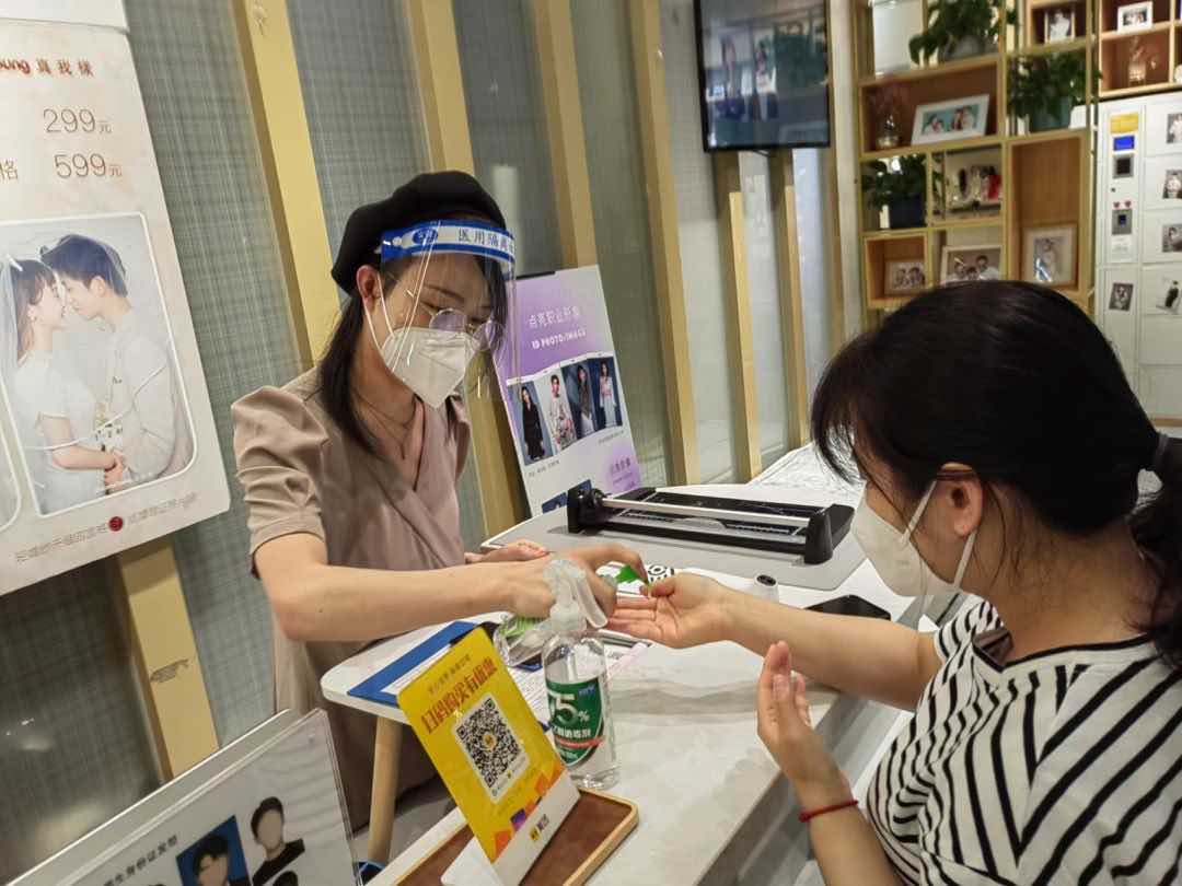有顧客表示,“來之前有點擔憂,特意化了妝,帶了套衣服過來,沒想到店內的防疫舉措還挺完善,從更換服裝到化妝,再到拍攝、溝通選片、修圖,都覺得很安心!