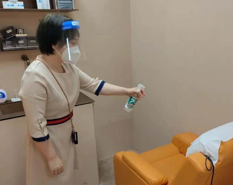 在一家護膚品銷售店內,進門處的工作臺上便擺放著門店店員的健康監測記錄表和每日門店的消毒統計表。健康監測記錄表中包含了員工每日早晚的體溫以及是否有相關癥狀等內容,消毒統計表則是記錄了門店每日的消殺時間、消殺區域等。店長王平告訴記者,“目前,店內員工每天都需要持24小時內的核酸陰性報告,以及抗原檢測陰性證明方可上崗。每天上班第一件事就是對門店進行一次全方位的消殺,在中午、下午和晚上各時間段,也都會進行消殺,對顧客接觸較多的地方會重點消殺,努力在為顧客們提供舒適服務的同時,保障顧客們的健康安全!