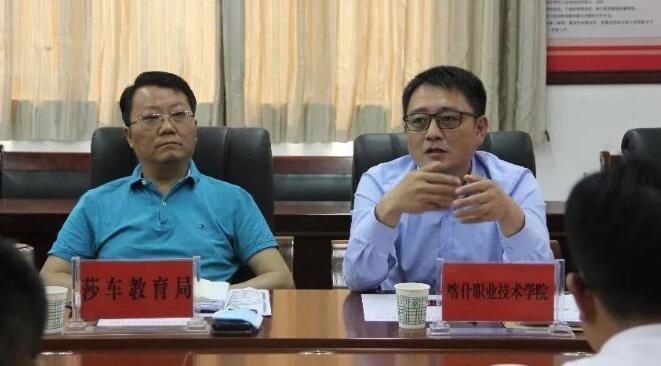 日前,喀什職業技術學院黨委委員、副院長干英。ㄉ虾T、莎車教育局副局長張權(上海援疆)等一行來到澤普縣職業技術學校調研校企融合、中高職貫通工作。專家一行在學校黨支部書記何和等陪同下對學校教學現場、實習實訓條件、校企合作現狀、學生就業等方面工作進行整體調研和現場觀摩。