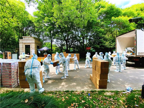 “分工明確、組織有序、快速高效?!本游瘯浳赫酌方榻B,卸貨組,“人肉”接力卸貨;分發組,負責將貨物運到各樓棟下;后勤組,為志愿者提供防護、消毒等;協調組,溝通聯絡、清點貨物、統計數據,“前期機制形成后,后面幾乎不用我怎么操心,貨到后兩二三個小時,就會出現在居民家門口”。