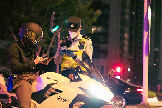 連日來,徐匯警方開展新一輪“礪劍行動”,聚焦徐匯濱江公共區域,在雙休日白天強化人流、車流疏導管控,在夜間設置路面卡點,強化對各類交通違法行為,尤其是對群眾反映的摩托車夜間噪音擾民問題開展整治。