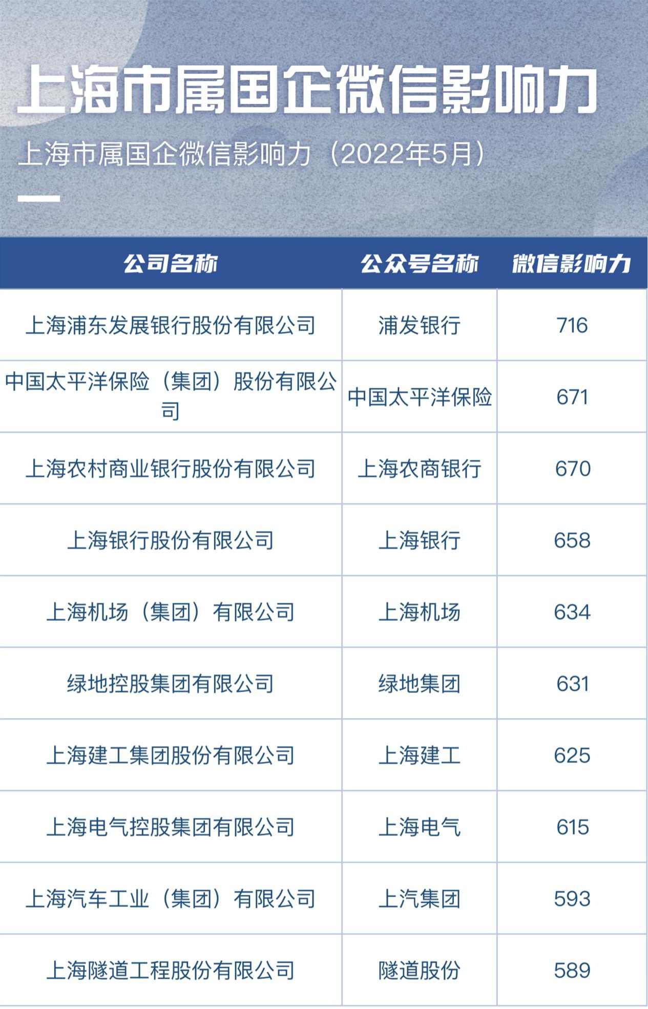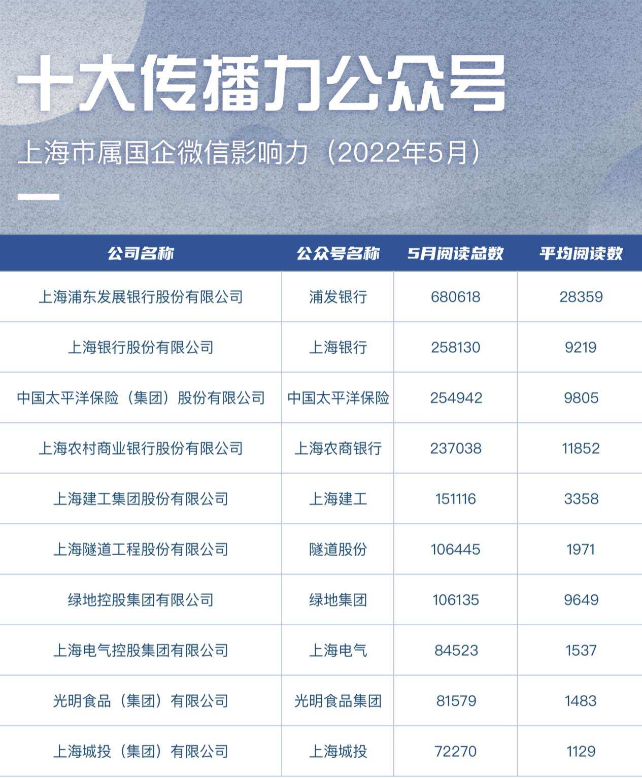 過去的一個月,人民網上海頻道對上海市屬國企的微信公眾號進行收集,并從公眾號閱讀量、點贊數、在看數等多個維度綜合分析,最終形成了《上海市屬國企微信傳播力指數》(2022年5月)。