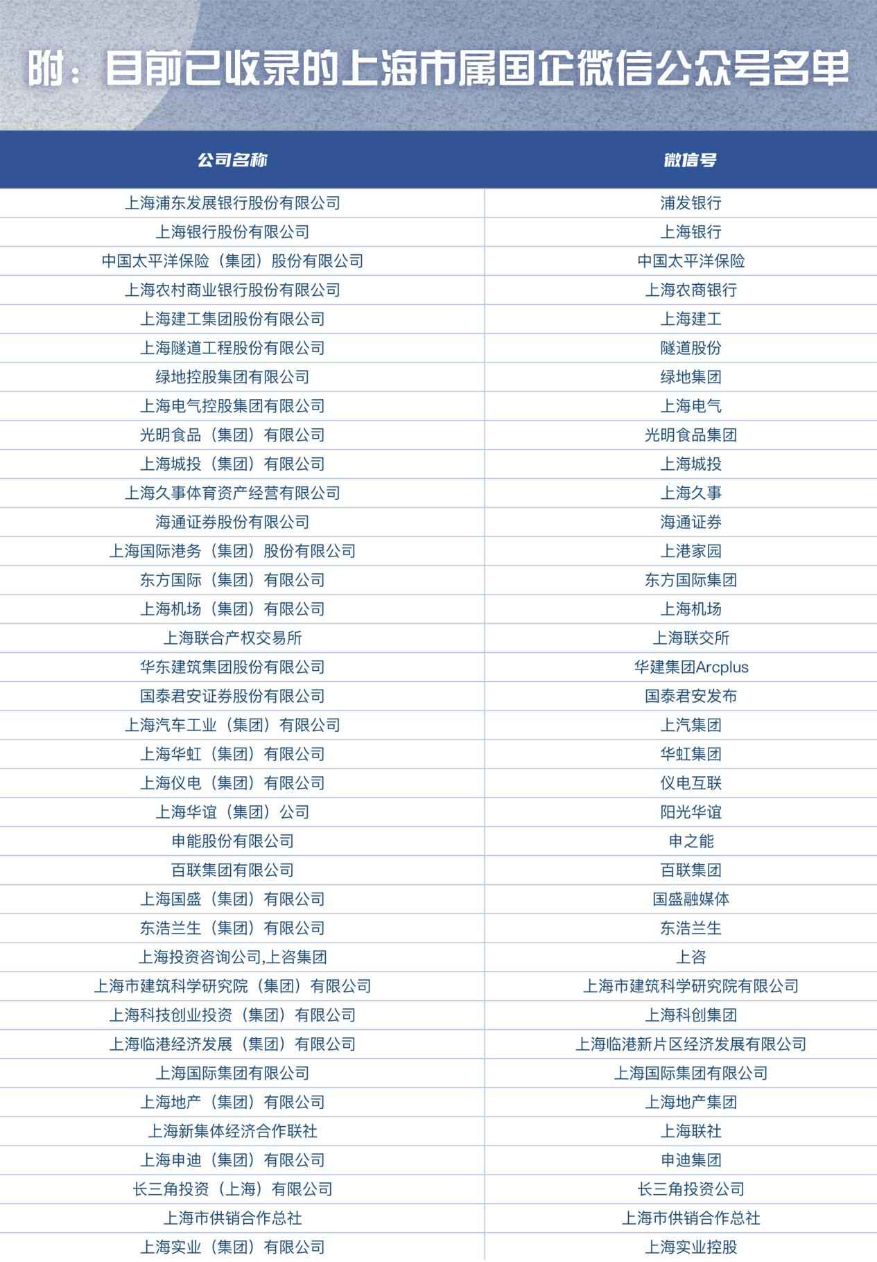 附:目前已收錄的上海市屬國企微信公眾號名單