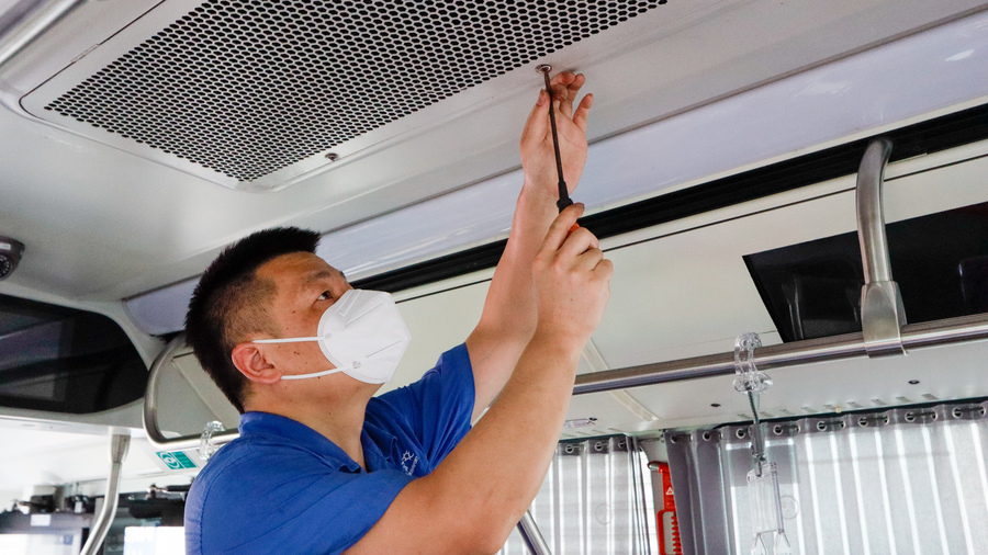 目前,浦東楊高公交已對1000余輛公交車輛的空調設施完成了檢修和清洗工作。按照防疫要求,公司每月對公交車輛開展一次全面維修保養,檢查空調控制面板、制冷系統、壓縮機等控件是否運轉正常,及時更換損壞零件、添加足量冷凍液等。同時,每周二次對空調濾網進行拆洗和消殺,保障通風順暢,確保車廂內環境衛生、安全。