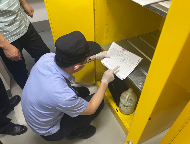 由于科研需要,該院內設有;穬Υ纥c。因此在檢查過程中,民警主要對儲存點的技防設施、監控設備、門窗完好情況以及應對突發情況的應急設備進行了逐一檢查,并通過專管人員對使用登記情況進行核實。民警介紹,為確保安全,即使此前受疫情影響,工作人員也堅持通過視頻連線的方式開展相應檢查。