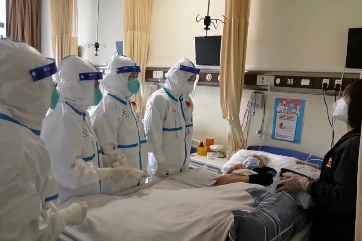 瑞金醫院盧灣分院內,醫護人員密切關注著高齡老人的病情變化