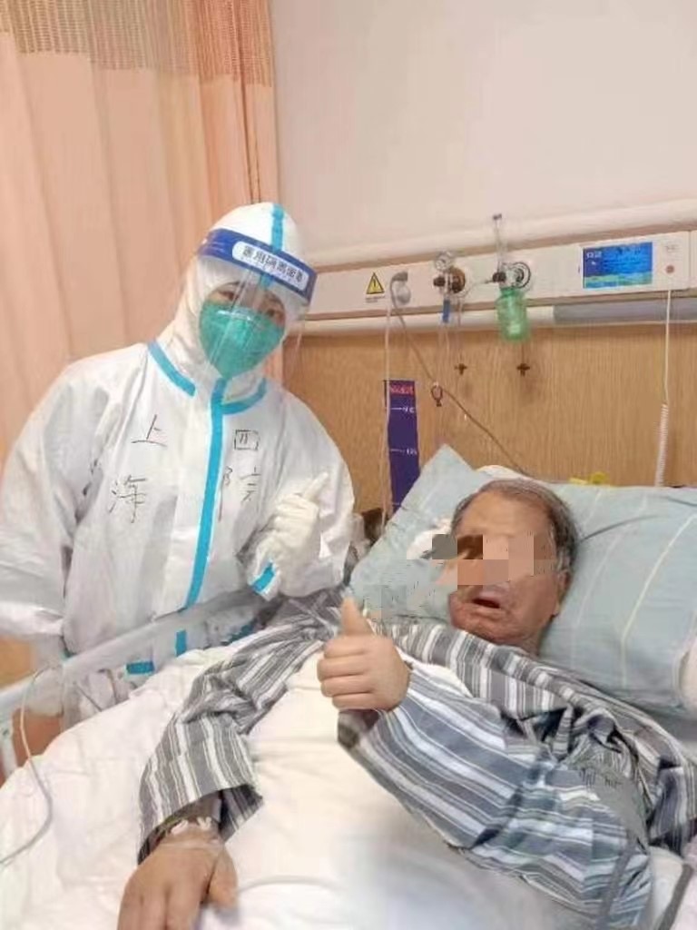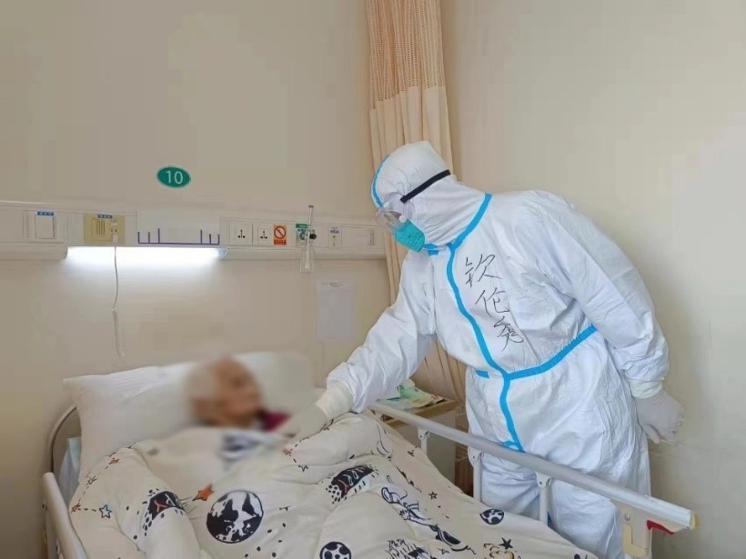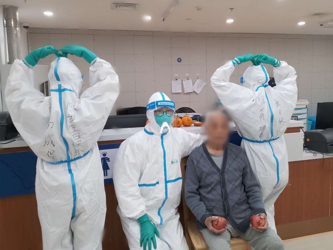 4月初,復旦大學附屬華山醫院寶山院區新冠定點醫院院長欽倫秀在探望一位患有阿爾茨海默癥、腦梗等基礎疾病的103歲阿婆,5月1日,經過精心照料的阿婆康復出院