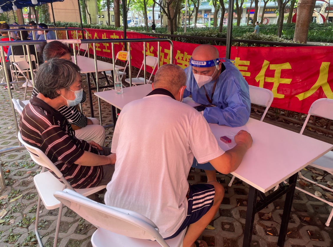 為最大限度保證舊改工作不受疫情影響,工作人員將辦公桌搬到了戶外來接待居民。