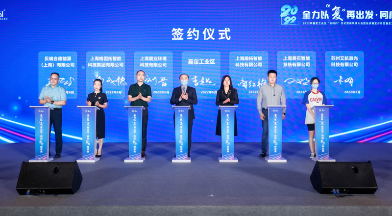 人民網上海6月28日電 6月28日下午,全力以“復”再出發,同心聚力向未來——2022年嘉定工業區“云相約”優化營商環境大會暨投資嘉定月月簽嘉定工業區專場活動上,20個項目集中簽約,涵蓋汽車新四化、智能制造、智能傳感器、節能環保、新材料等重點產業領域,投資總額達195億元。