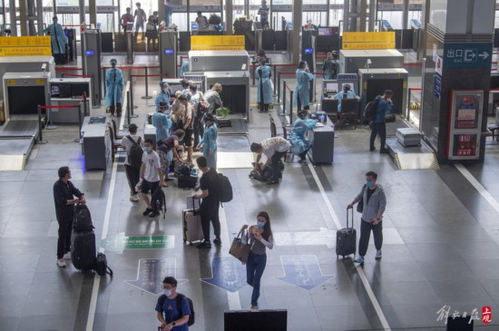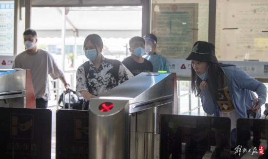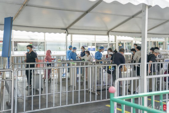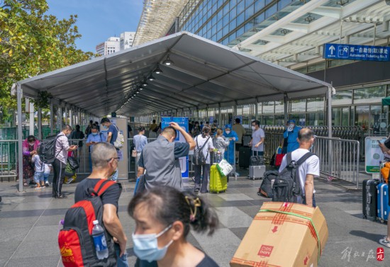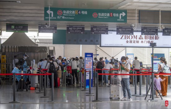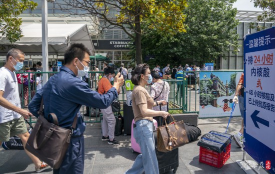 抵滬旅客憑借48小時內核酸陰性證明有序出站。