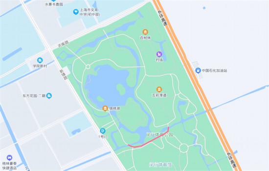 靠近閔行體育館的一條園路暫不開放(圖中紅色示意)