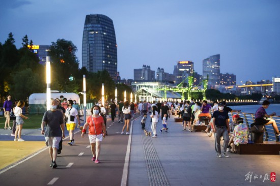 6月27日傍晚,人們來到徐匯濱江休閑散步。