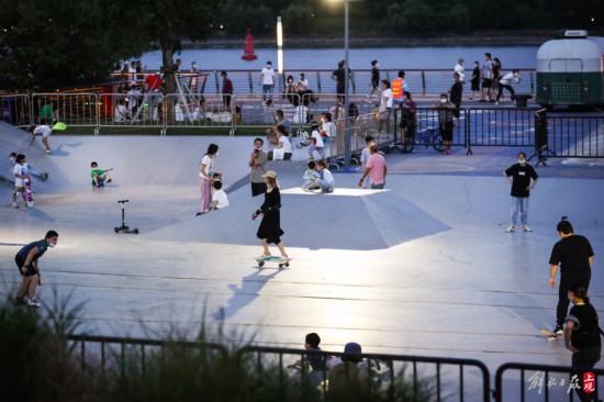 為確保游客的安全,滑板運動僅限于滑板公園內(須掃碼進入),其他公共區域禁止滑板運動。
