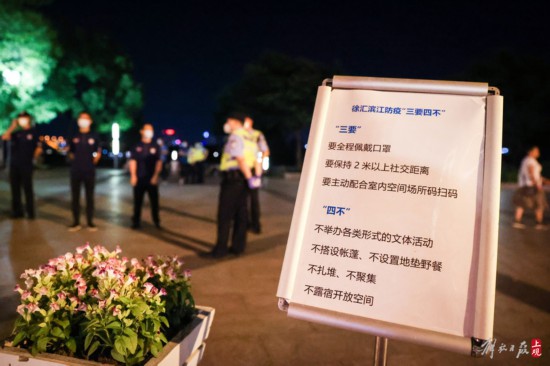 6月27日傍晚記者來到徐匯濱江看到,工作人員正在布置“三要四不”的布告展板,徐匯公安民警在濱江區域提醒人們各類注意事項。