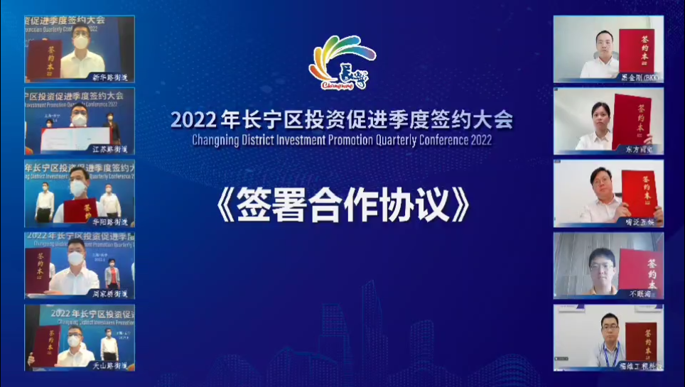 區投資促進大會上,長寧各街鎮與企業線上簽約
