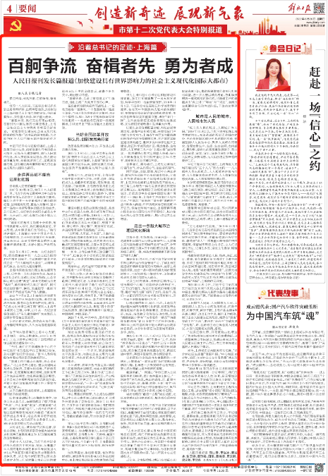 6月26日,解放日報頭版報道中共上海市第十二次代表大會開幕,轉載本報《沿著總書記的足跡·上海篇》