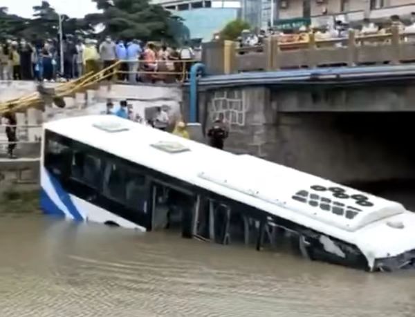 公交車滑入河道