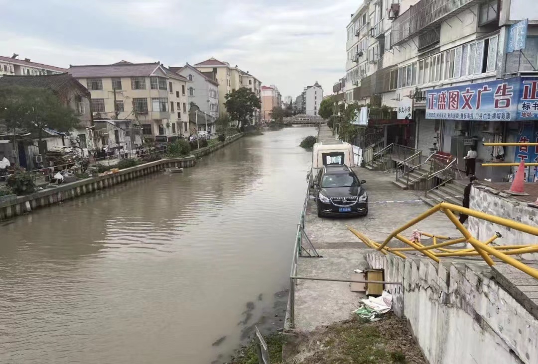 事發時,美團外賣上;菽险军c騎手楊飛剛送完一單,看見很多人往河邊跑,他到河邊就聽見有人在喊,“里面還有人”,喊話的正是已進到車里的周先生。