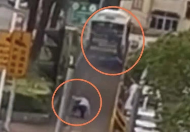 連師傅追趕公交車不慎跌倒