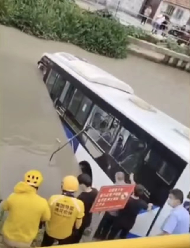 眾人發現,車內的河水幾乎已沒過司機頭頂,幾人合力把司機從駕駛座上抬到公交車尾部安全地帶。隨后,楊飛等人往車前部座位、角落摸索檢查,確認已無其他人涉水。公安、消防趕到后,楊飛等騎手自行離開。