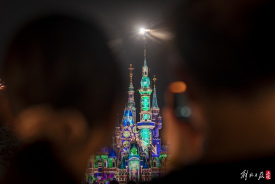 夢幻的城堡在各色燈光的映照下更加神奇美麗,吸引了不少游客打卡留影。