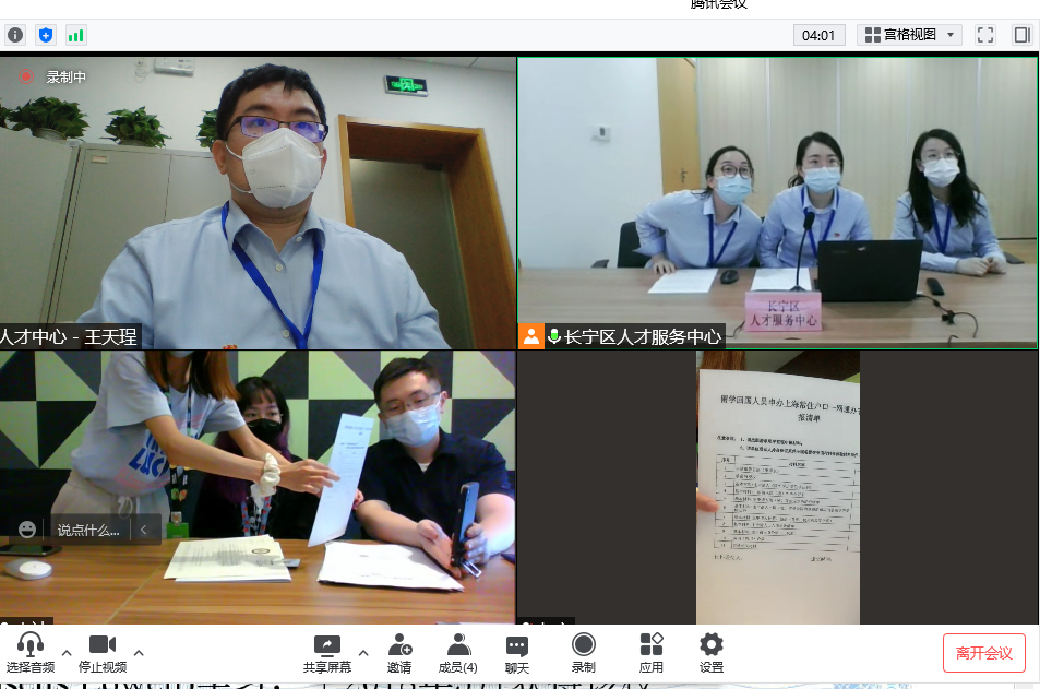(二)視頻核驗。通過預約,申請單位和區人社局通過視頻會議系統進行在線交流,申請單位工作人員在線展示原本需要到現場遞交的相關材料,區人社局工作人員按照材料清單在線審核申辦材料,提出相應審核意見,同時將整個過程錄制存檔。