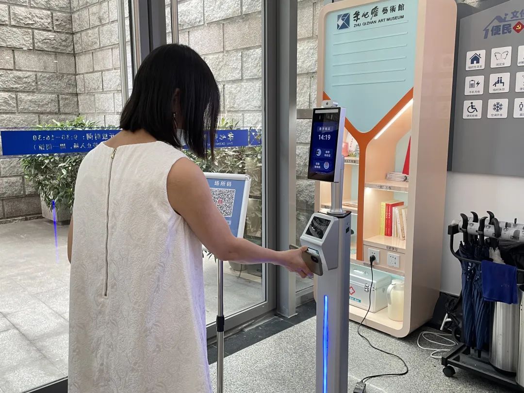 開放首日,記者在朱屺瞻藝術館入口處看到,市民正有序掃描場所碼和數字哨兵,憑預約碼入場參觀。