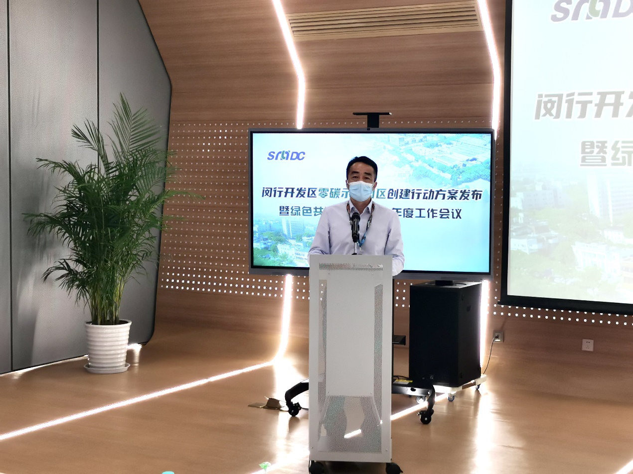 2021年年初,閔行開發區積極響應國家碳達峰碳中和戰略,進一步深化園區綠色低碳發展,率先提出創建零碳示范園區的目標。隨后與上海市環境科學研究院合作啟動編制零碳示范園區創建行動方案。經過全面調研分析,歷時近一年時間,行動方案順利編制完成并通過專家評審。本次會上,秦勇同志宣布閔行開發區零碳示范園區創建行動方案正式發布。