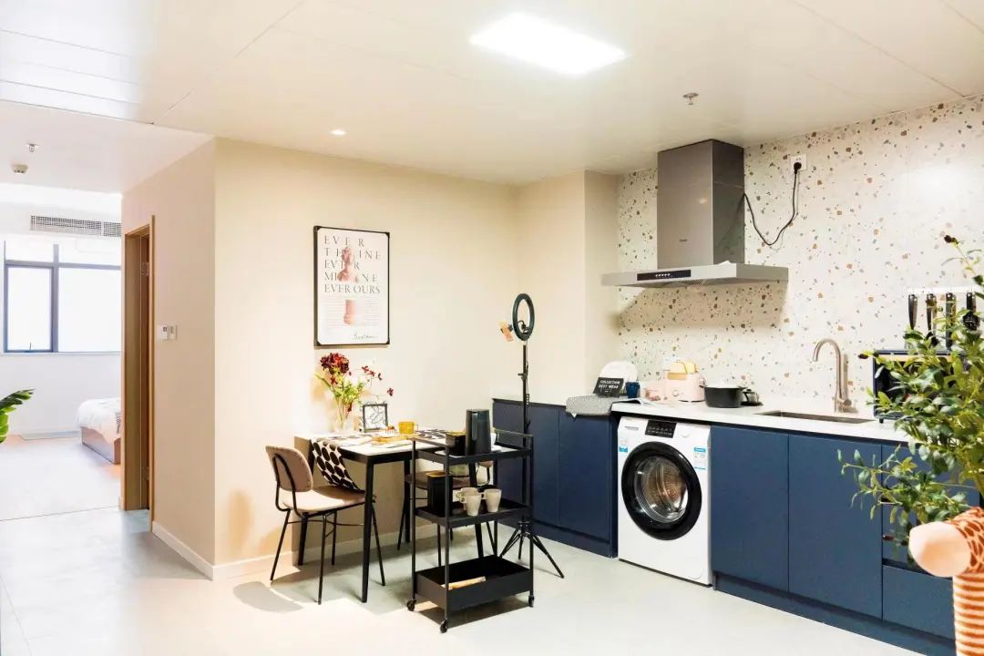 設施配備:公寓內配備了床、衣柜、沙發、寫字桌椅、餐桌椅等必備家具;配置空調、熱水器、冰箱、洗衣機、抽油煙機等生活家電;公共區域配有健身房、瑜伽室、共享辦公及會議室、特色街邊餐飲等;地面停車位65個。