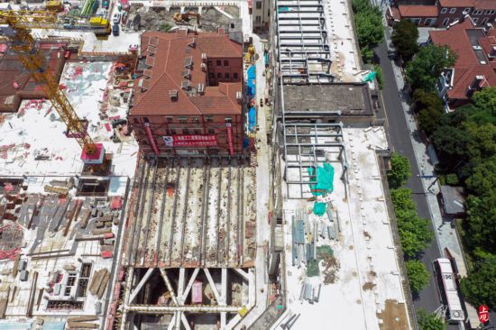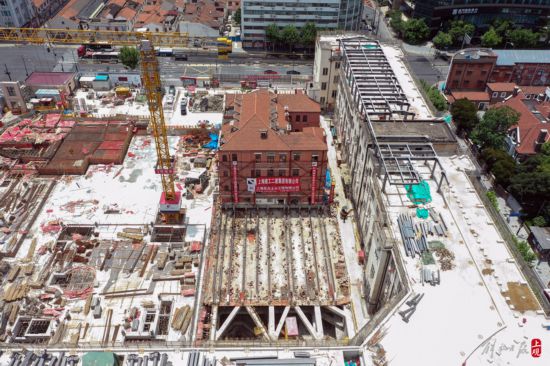 據現場施工的平移專業單位上海先為土木工程有限公司工程師介紹:“小紅樓”在基坑棧橋上停留18個月后,于2022年6月30日正式啟動平移回遷施工,計劃本月8日正式回到原址。“小紅樓”重約3800噸,是上海目前面積最大、重量最重的砌體結構平移工程,回歸原位前地下工程結構也已完成改造。