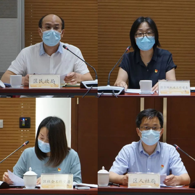 區民政局、區區級機關工作黨委、區社會工作黨委、區人社局分別作交流發言。