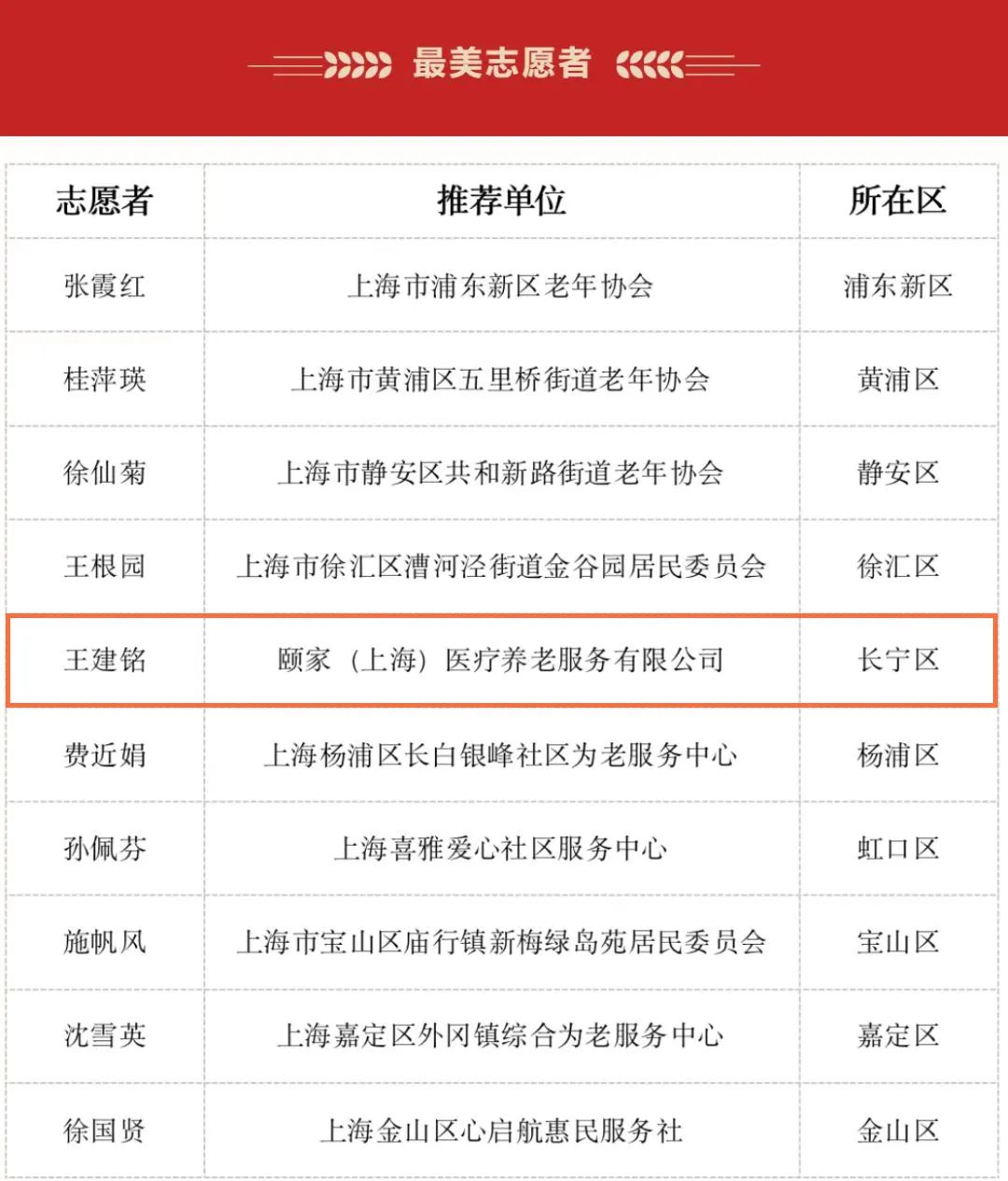 2021年上海市“老伙伴”計劃推選結果日前公布,長寧區共有12名志愿者榮獲市級表彰。其中,王建銘入選“最美志愿者”,11位“老伙伴”志愿者入選“百名志愿者”。