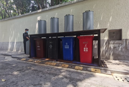 但小區內正對大門的主干道僅四五米寬,原本的垃圾箱房只能“擠”在路旁,而且只能塞入兩個垃圾桶,不僅達不到標準垃圾箱房需要設置四分類垃圾桶的要求,更是以不時流淌在地面上的污水和濃重的異味,成為每一位不得不從它身邊經過的居民心中的“陰影”。