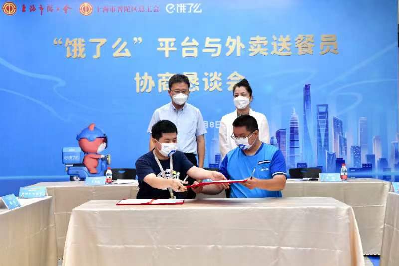 作為全國總工會開展互聯網平臺企業與新就業形態勞動者民主協商試點工作的重要一環,在上海市總工會、普陀區總工會的共同指導推動下,在阿里集團的大力支持下,在前期溝通協商的基礎上,本市首次召開新就業形態勞動者與互聯網平臺企業協商懇談會,雙方經協商達成共識,并形成《“餓了么”平臺與外賣送餐員協商懇談會會議紀要》,在市、區兩級總工會的共同見證下,由外賣送餐員代表與平臺企業代表簽字確認生效,本市首份平臺企業與新就業形態勞動者民主協商紀要就此誕生。中華全國總工會權益保障部粟斌部長、中國財貿輕紡煙草工會一級巡視員張曉冬通過視頻連線對當天懇談會進行了指導點評,并給予高度肯定。