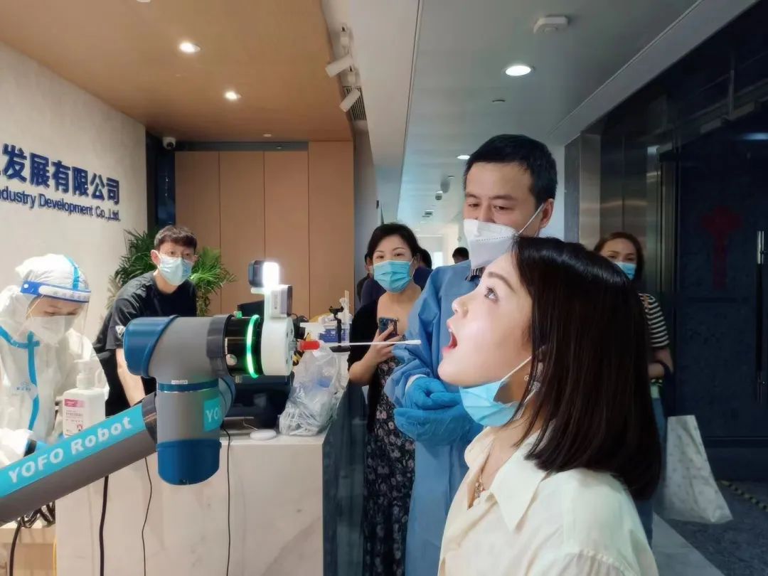“有了采樣機器人,我們采樣志愿者的工作量減輕了許多,可以騰出手來做更多的事情?!眮碜耘R空公司的員工、志愿者徐正敏說道。封控期間,徐正敏經過培訓成為了一名持證的核酸采樣志愿者,正式復工后,又承擔起為園區白領和公司同事進行核酸采樣的工作。他表示,公司有好幾名像他這樣的志愿者,值班的時候平均一天要完成一百多份的采樣任務,在機器人的輔助下,工作壓力小了,效率更高了。
