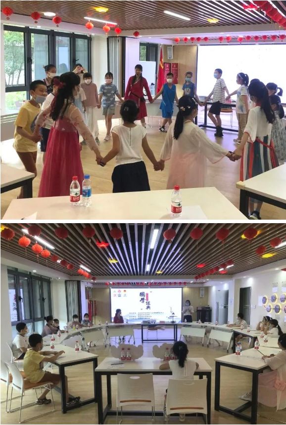 本次國學主題活動主要圍繞詩經《蒹葭》展開,老師帶領學生們一起進行發聲練習與吟誦,思考生命存在的意義與本質。通過讓學生們描寫每一個字,讓他們靜心體會《蒹葭》的意境,表達自己的感受,體會人與蘆葦“柔弱而堅韌”的共性。通過戲劇游戲導引,讓學生們想象蘆葦的樣子,相互配合環繞在一起,發揮每個人的想象力與創造。