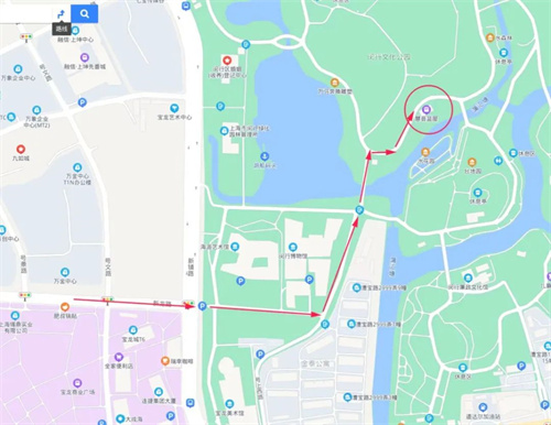 到達路線:新鎮路大門進去直走到底,左轉直走到底,進大門,即可到達(見下圖紅線)