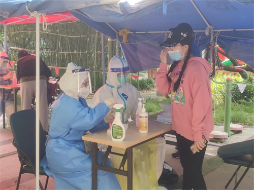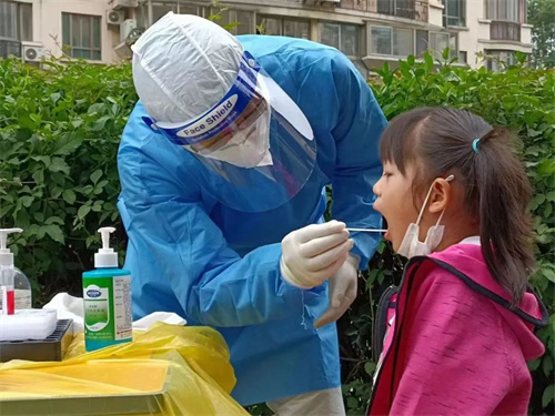 如今,每周末他還擔任社區核酸采樣志愿者。在上崗前,擔心采樣不到位,他在家與兒子女兒反復練習“捅喉嚨”技巧。