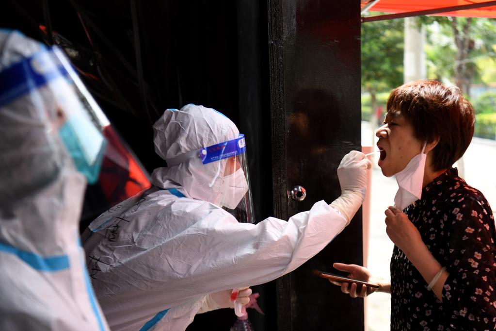 7月3日,在安徽省宿州市泗縣虹城街道東關社區,醫務人員為居民進行核酸采樣。新華社記者 黃博涵 攝