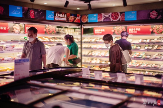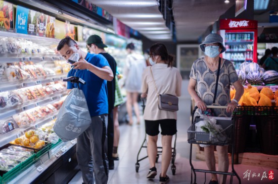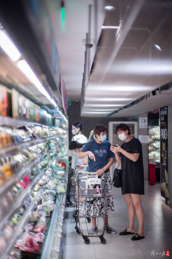 據門店經理介紹,受部分小區封控的和持續高溫的影響,在線訂單量增多,導致運力緊張,呼吁有需求的市民不妨直接到門店采購。