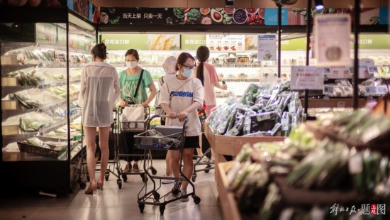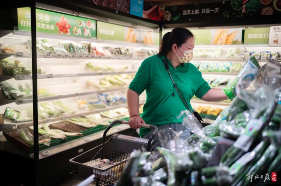 店長介紹,目前供應鏈都正常,由于市場需求大增,一部分還要滿足線上的需求增量,加之蔬果的保質期很短,因此到了下午,蔬菜區的產品存量較少,如果第二天上午來選購,貨品供應就很充足。