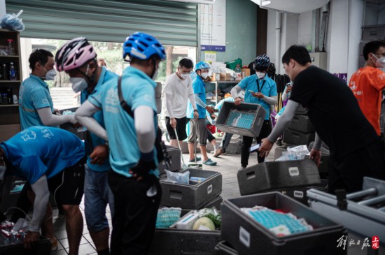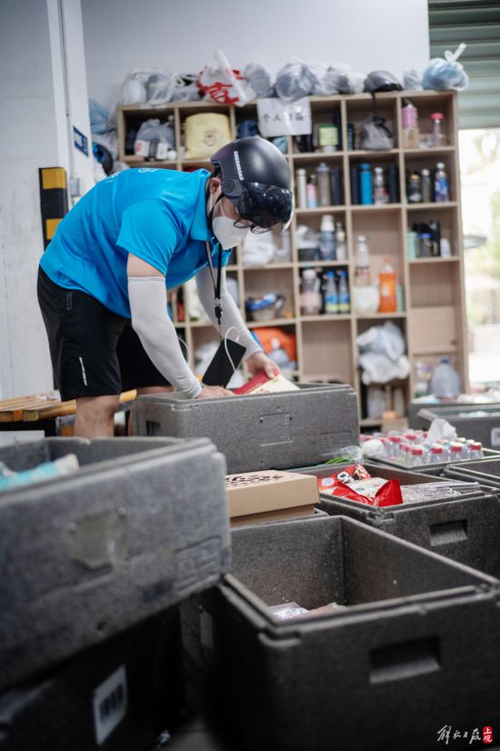 記者來到門店后的盒馬配送站,此時站內正如戰場一般忙碌,所有配送小哥開足馬力,快速理貨、備貨、送貨。持續的高溫和激增的單量為小哥們的工作帶來了不小的挑戰。