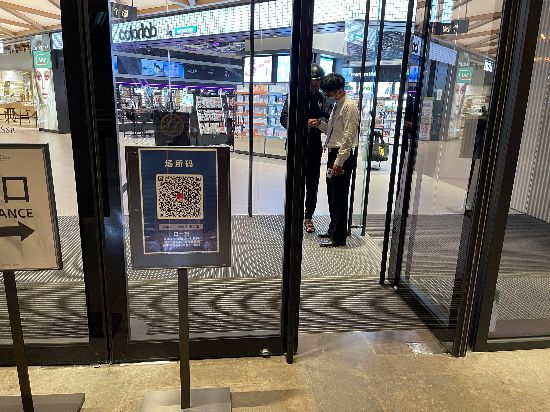 在市區一些大型商場、購物中心和餐館,記者注意到,這些場所均已布設了“場所碼”或“數字哨兵”,入口處還有工作人員查驗,如果顧客核驗結果不符合要求,會被勸說不要入內。在靜安區的晶品購物中心,兩名顧客試圖進入商場,僅有一人在“數字哨兵”上掃碼核驗,另一人被保安攔下后掃碼,其核酸檢測結果是5天前的,只能離開。