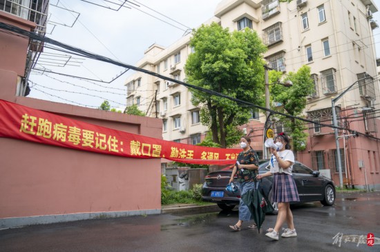 2022年7月12日下午,在浦東北蔡鎮下南居民區的老年人疫苗接種常態化專場,73歲的周阿姨在社區工作人員的陪同下前來接種疫苗。