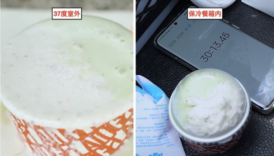 ▲30分鐘后室外和餐箱內同款冰激淋形態對比