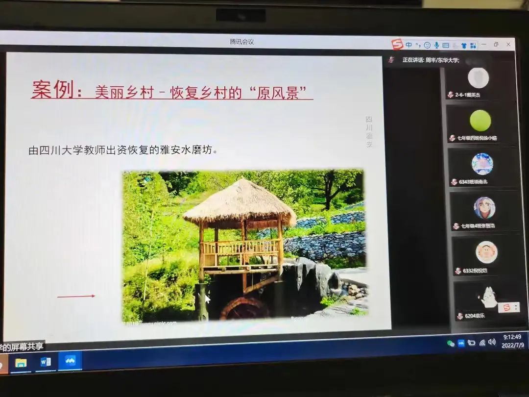 在學?!霸贫嘶ブ? 創美成長”暑期育人方案的指引下,新七年級(1)班的6位同學發起了親子家庭讀書營活動,邀請爸爸媽媽和老師一起參與。該場活動由同學們自發組織和策劃,第一次活動,由施懌晗同學和她的媽媽主講,分享《論語》學習心得。