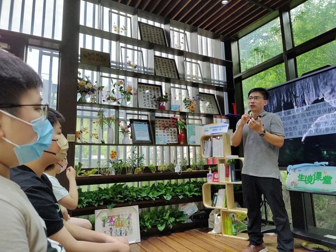 上午9點整,伴隨著陣陣蟬鳴,樂頤生境花園的活動室里,“生境課堂”第一講沉浸式地展開。來自復旦大學的“80后”青年研究員王放以“人與自然在城市里的共存”為主題,帶領線上線下的公眾,開啟了一場生動的“科普游學之旅”。
