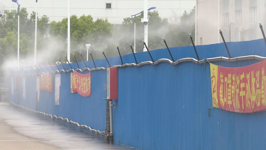 此外,高溫天氣下,建筑工人作業環境艱苦,為避免他們出現中暑等身體不適情況,工地施工區域開啟噴霧、休息區開啟空調。同時采取“做兩頭,歇中間”的時間微調措施。