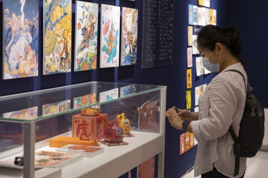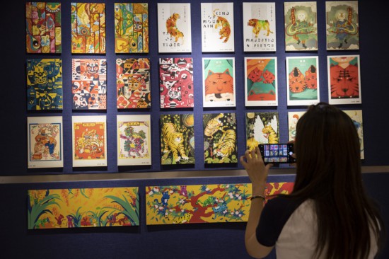 市民在二樓的白廂展廳欣賞“愛老虎呦——第十六屆海上年俗風情展”上的作品。